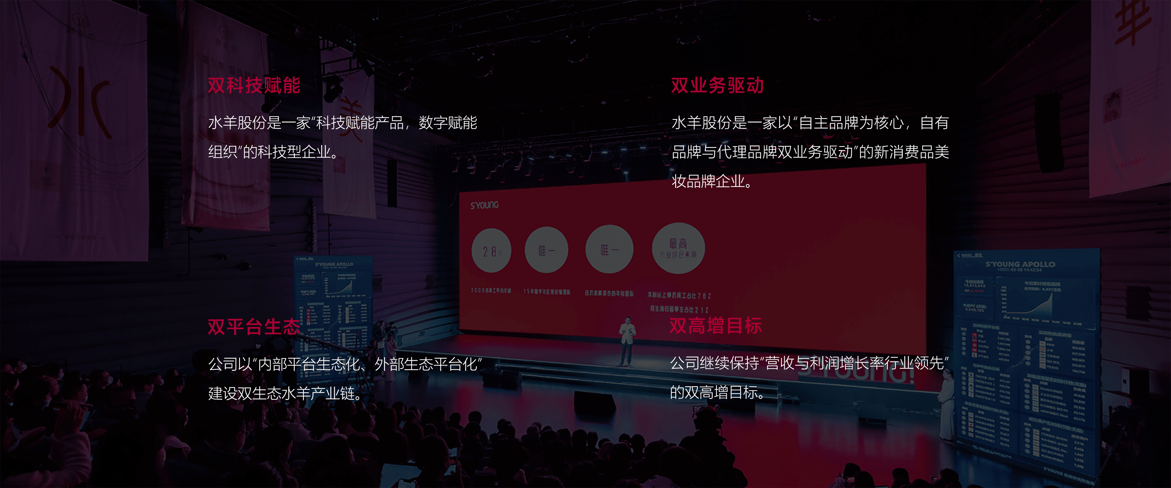 在“研发赋能品牌,数字赋能组织;以自主品牌为核心,自有品牌和代理品牌双业务驱动;双平台生态”的战略下,追求营收增长率与利润增长率高于行业的双高增目标。